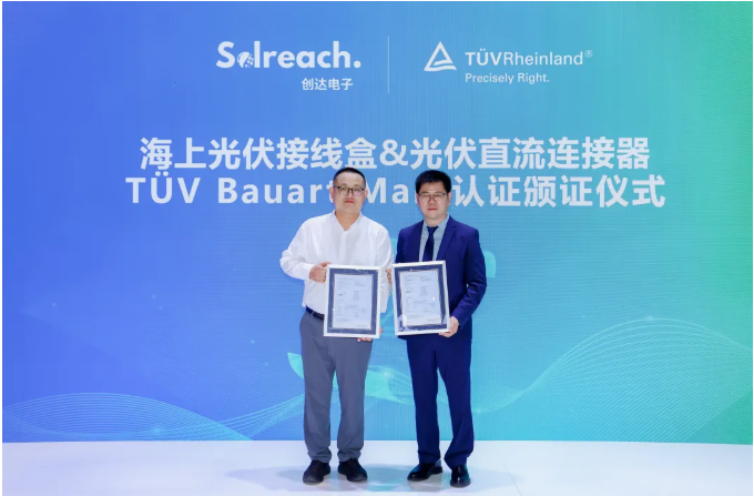 TüV萊茵為泰州創(chuàng)達(dá)海上光伏接線(xiàn)盒和海上光伏直流連接器頒發(fā)TüV Bauart Mark型式認(rèn)證證書(shū)